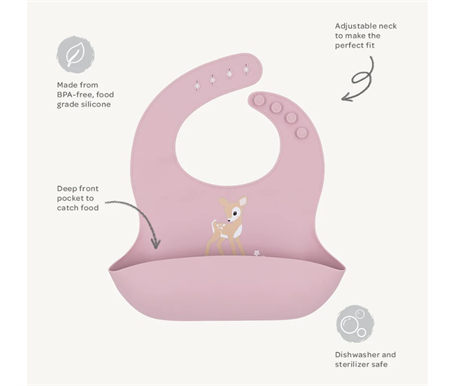 Made from BPA-free, food-grade silicone, this bib is perfect for keeping your little one clean at mealtimes. Lightweight, soft and durable it has an adjustable neck for the perfect fit. The deep front pocket is perfect for catching food that doesn't make your little one's mouth and is easy to wipe clean ready for their next meal.