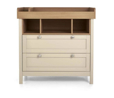 The Mamas & Papas Harwell Dresser-Changer offers plenty of storage space to organise your baby’s things. A duo of storage solutions, including 2 deep drawers and 3 open box-style storage shelves, for all your baby’s essentials, sleepsuits and clothes. And with handy soft-close drawers you won't wake baby during naptime. With a clever 2-in-1 design that allows you to save on space, it features a removeable changing top, giving you a convenient place to change your baby. And when your little one no longer needs their changing top, simply remove and you’re left with a beautiful dresser. In a beautiful two-tone style, soft cashmere shade paired with wood-effect.