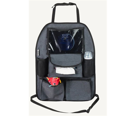 - Easily buckles to the back of the seat and designed to coordinate with car interiors