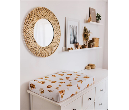 This adorable Snuggle Hunny Lion Fitted Bassinet Sheet is made from snuggly soft stretch cotton jersey. It can also be used a Change Mat Cover. A simple and beautiful way to style your nursery. This would make the perfect newborn gift or for the expecting mum. Nurseries never looked so good.