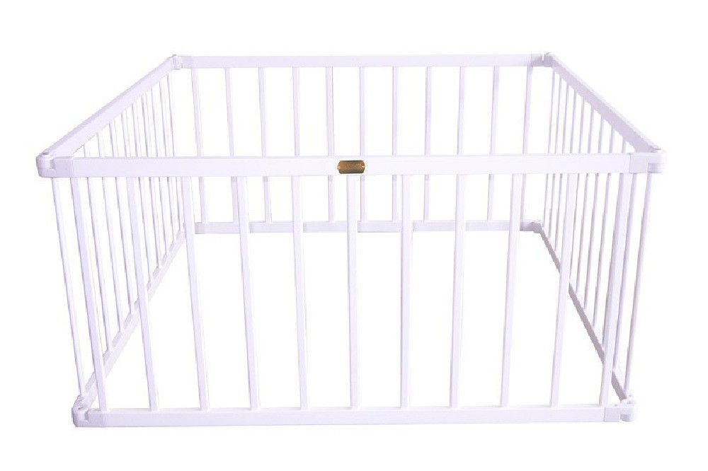 It achieves these remarkable characteristics through the patented design of its connecting corner which importantly makes it the only wooden playpen available with rubber feet to prevent sliding & push button assembly for quick foldup storage.