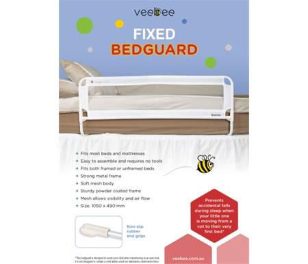 The VeeBee Fixed Bed Guard is designed to prevent falls during sleep as your child transitions from cot to big bed.